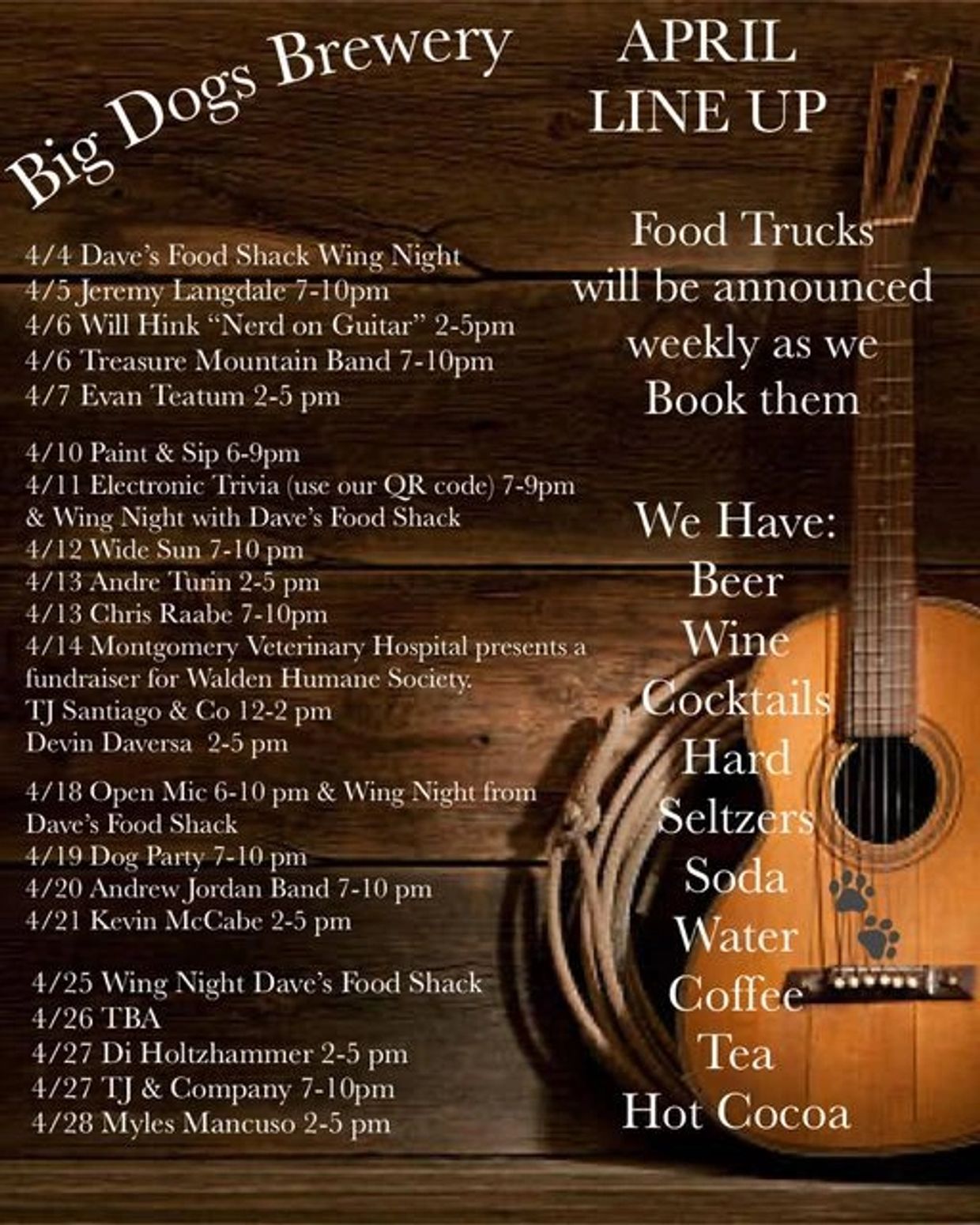 Big Dogs Brewery offers a variety of musical performances every weekend!